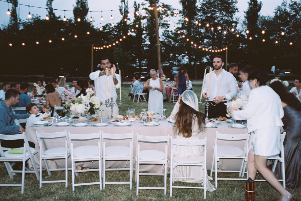 Desde la cocina compartida con amigos hasta el vestido de la madre de la novia (también creado por Julia en nuestro atelier), cada detalle fue una oda al «hecho a mano».