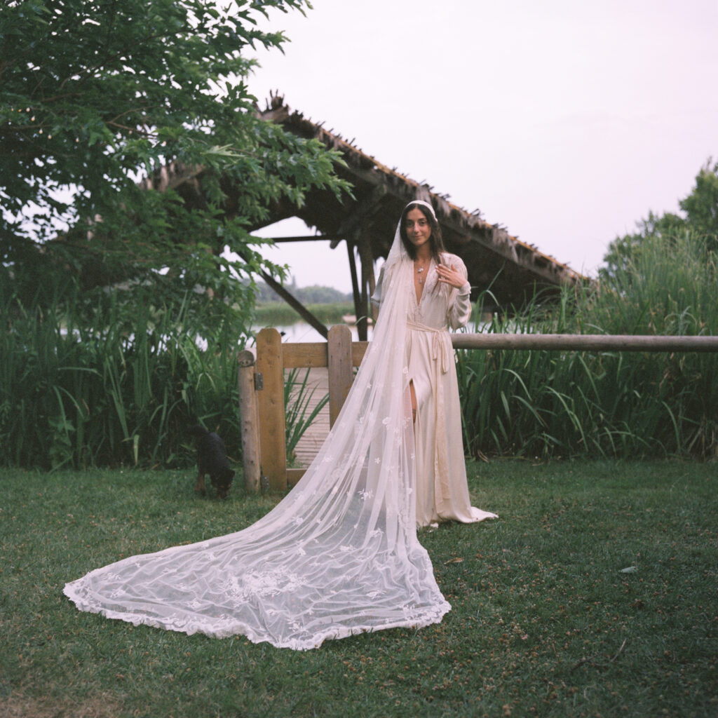 Para el gran día, eligió un diseño que respira la tendencia «New Vintage«: encajes delicados, siluetas que fluyen y una artesanía que evoca el romanticismo de antaño pero con la comodidad que exige una novia moderna.