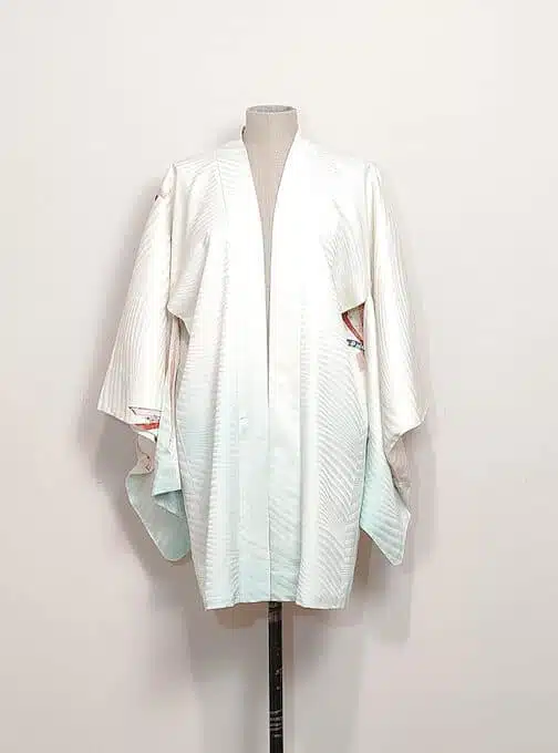 Authentic traditional Japanese silk jacket with turquoise-white gradient.