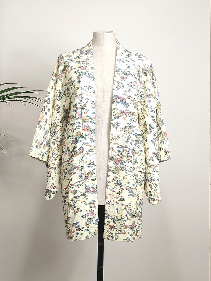 Vintage cream colored Haori with beautiful multicolored drawings.