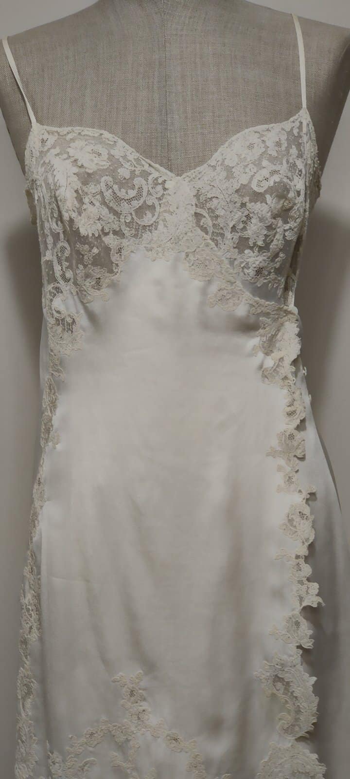 Gorgeous vintage ivory lingerie dress in natural silk with delicate alençon lace.