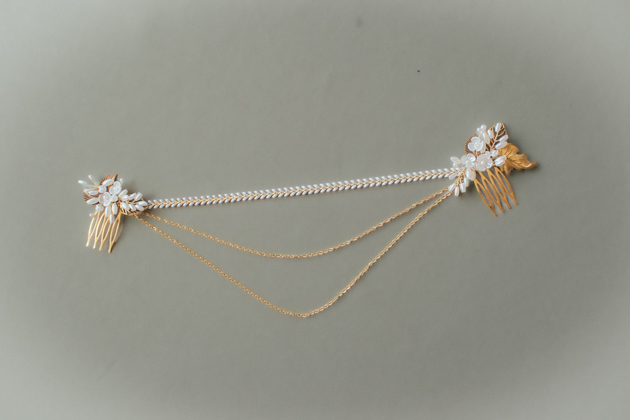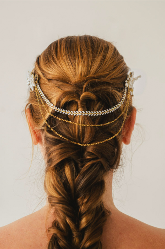 Tocado de novia dorada cadenas